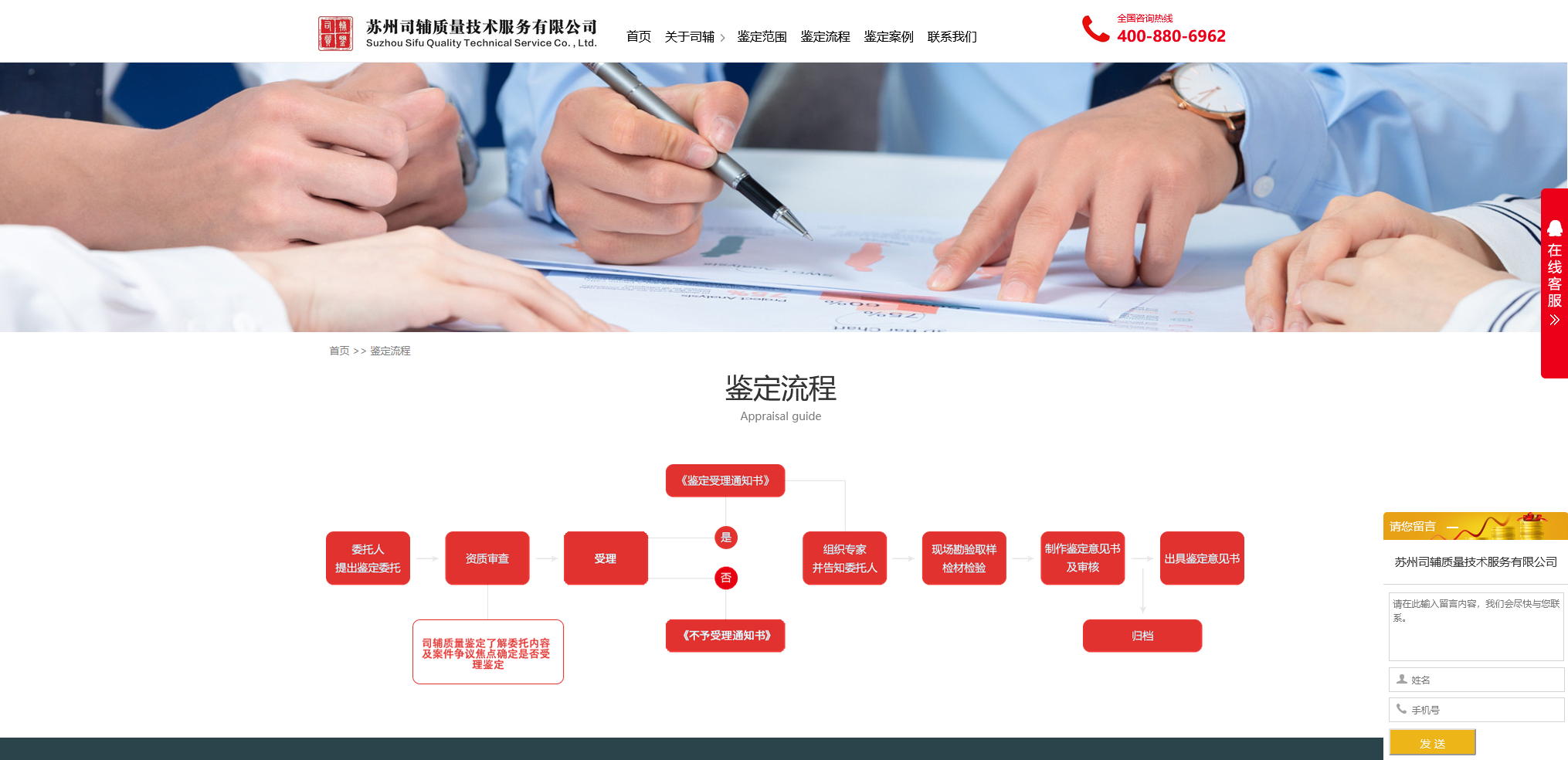苏州司辅质量技术质量服务有限公司的创始团队拥有20年以上的行业从业经验,以“秉承科学,坚持客观,守卫公正”的愿景在被文人墨客称作“人间天堂”的苏州成立了这一服务机构。苏州司辅质量技术质量服务有限公司有百人以上副高以上职称 的相关专家团队;并且有备案鉴定专家3000余名为我单位服务,与多家实验室签署战略合作协议,可用检测分析设备1000余套。我单位秉承“公平、公正、客观、科学”的态度,为全国的各级法院、公安、检察院、仲裁委等单位提供产品质量鉴定报告,为公正判决提供了坚实的鉴定依据。苏州司辅质量技术质量服务有限公司立根于产品质量鉴定服务,逐步向其它鉴定领域发展,未来成长为一个综合性的鉴定服务机构。