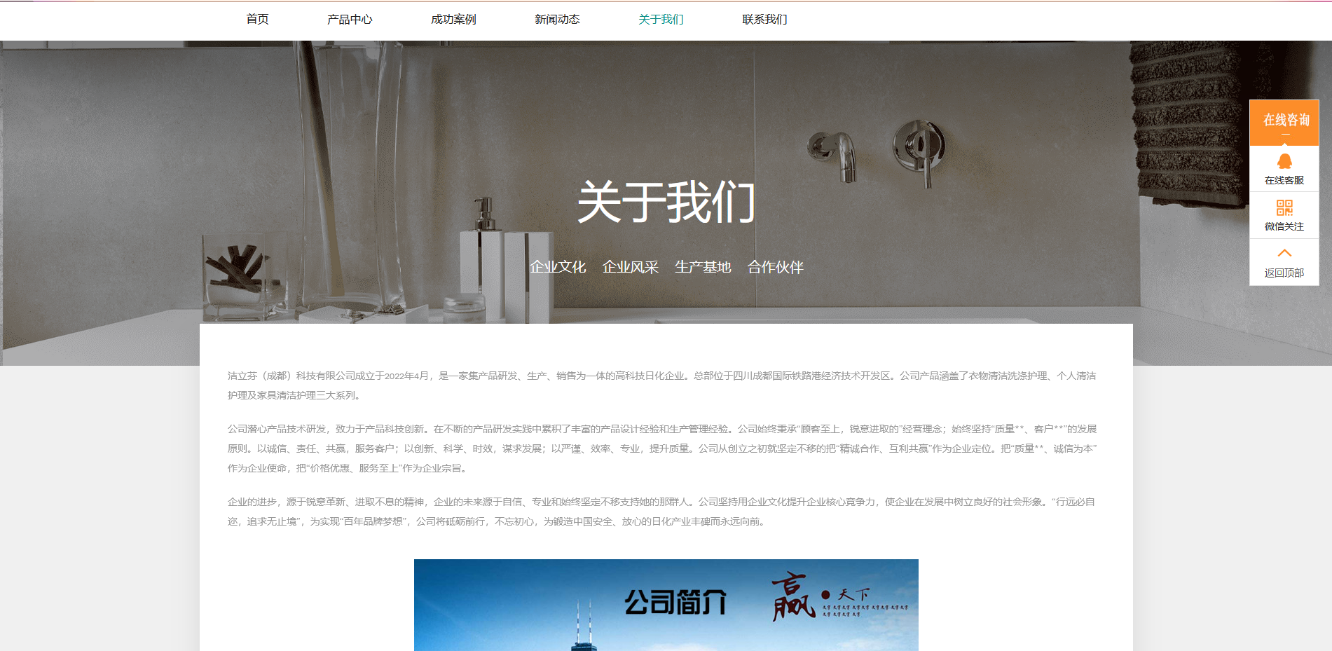 洁立芬(成都)科技有限公司成立于2022年4月,是一家集产品研发、生产、销售为一体的高科技日化企业。总部位于四川成都国际铁路港经济技术开发区。公司产品涵盖了衣物清洁洗涤护理、个人清洁护理及家具清洁护理三大系列。